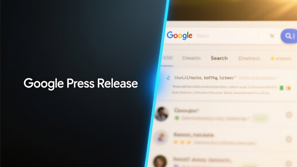 A split-screen composition of a Google press release on a sleek, dark matte background on the left, and a user's actual search result on a📷 Photo by Tech&Space